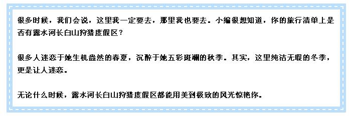 相遇最美人間雪,邂逅露水河長(zhǎng)白山狩獵度假區(qū)!